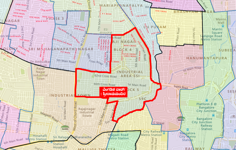 Rajajinagar 3rd, 4th and 5th Block (P), Chamundi Nagar, Rajajinagar 6th Block.