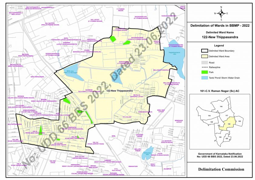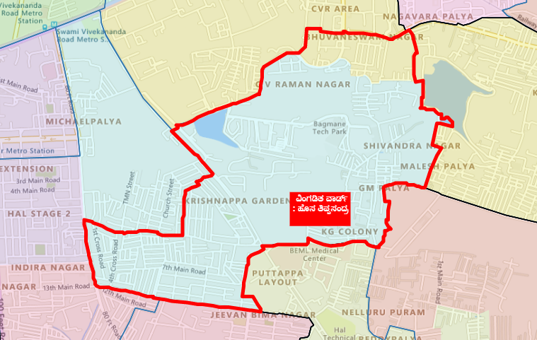 LRDE Layout (P), Bhuvaneshwari Nagar, Varsova Layout (P), Bairasandra, Malleshappana Palya (P), GM Palya (Bairappa Layout, Garakamantana Playa, KG Colony, Bhagamane Tech Park, New Tippasandra (P), Patel