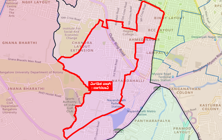 ಉತ್ತರ : ಜ್ಞಾನಭಾರತಿ ರಸ್ತೆ, ಎಎಮ್ಡಿ ಕಾಂಪೌಂಡ್, 100 ಅಡಿ ಹೊರ ವರ್ತುಲ ರಸ್ತೆ, 3ನೇ ಅಡ್ಕ ರಸ್ತೆ, 5ನೇ ಸಿ ಅಡ್ಕ ರಸ್ತೆ, ಗಂಗೊಂಡನಹಳ್ಳಿ ಗಡಿಯ ಮೂಲಕ ಹಾದು ಹೋಗುವ ಮುಖ್ಯ ರಸ್ತೆ, ಮಳೆ ನೀರು ಚರಂಡಿ, 11ನೇ ಅಡ್ಡರಸ್ತೆ, ನಾಯಂಡಹಳ್ಳಿ ಮುಖ್ಯ ರಸ್ತೆಯವರೆಗಿನ 80 ಅಡಿ ರಸ್ತೆ
