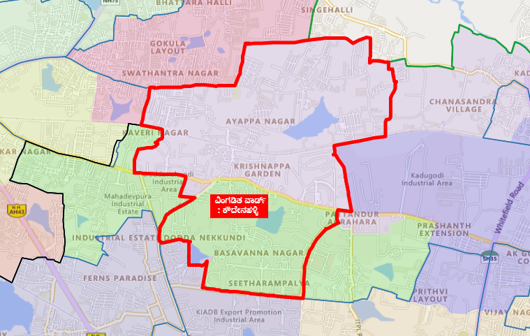 ಪೂರ್ವ : ಅಡ್ಡರಸ್ತೆ, ಮಳೆನೀರಿನ ಚರಂಡಿ, ಕಾಂಪೌಂಡ್ ಗೌಡ, ಶ್ರೀ ಕೃಷ್ಣ, ಫಾರ್ಮ್ ರಸ್ತೆ, 7 ನೇ ಅಡ್ಡರಸ್ತೆ ಮುಖ, ರಸ್ತೆ, ರೈಲ್ವೆ, ಮಾರ್ಗ, 1 ನೇ ಮುಖ್ಯರಸ್ತೆ (ಹಾಲಿ ಇರುವ ವಾರ್ಡ್ ಗಡಿ), ವೈಟ್ ಫೀಲ್ಡ್ ರಸ್ತೆ, ಐಟಿಪಿಎಲ್ ಮುಖ್ಯ ರಸ್ತೆ, 1ನೇ ಮುಖ್ಯ ರಸ್ತೆ, 8ನೇ ರಸ್ತೆ