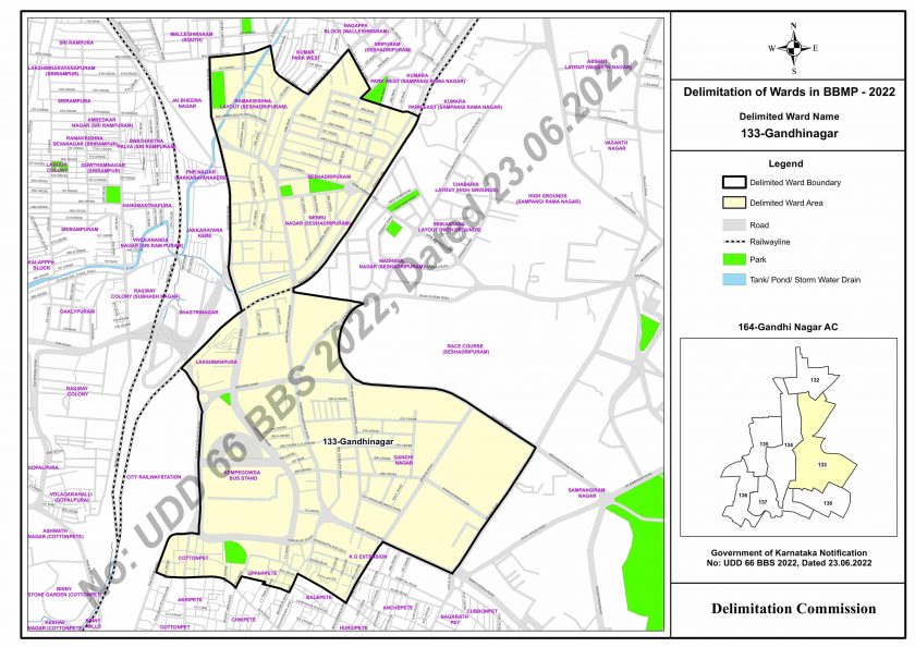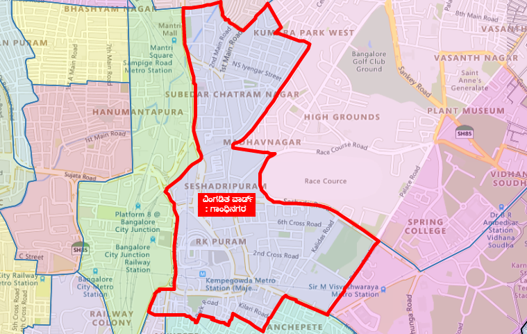 Ramakrishan Layout, Seshadripuram, Nehru Nagar, Gandhi Nagar, Lakshmanpura, Kempegowda Bus Stand, KG Extension (P), Balepete (P), Upparpete (P), Cottonpet(P).