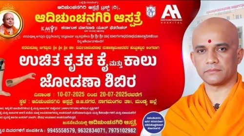 ಅದಿಚುಂಚನಗಿರಿ ಆಸ್ಪತ್ರೆಯಲ್ಲಿ ಉಚಿತ ಕೃತಕ ಕೈ-ಕಾಲು ಜೋಡಣೆ ಶಿಬಿರ.